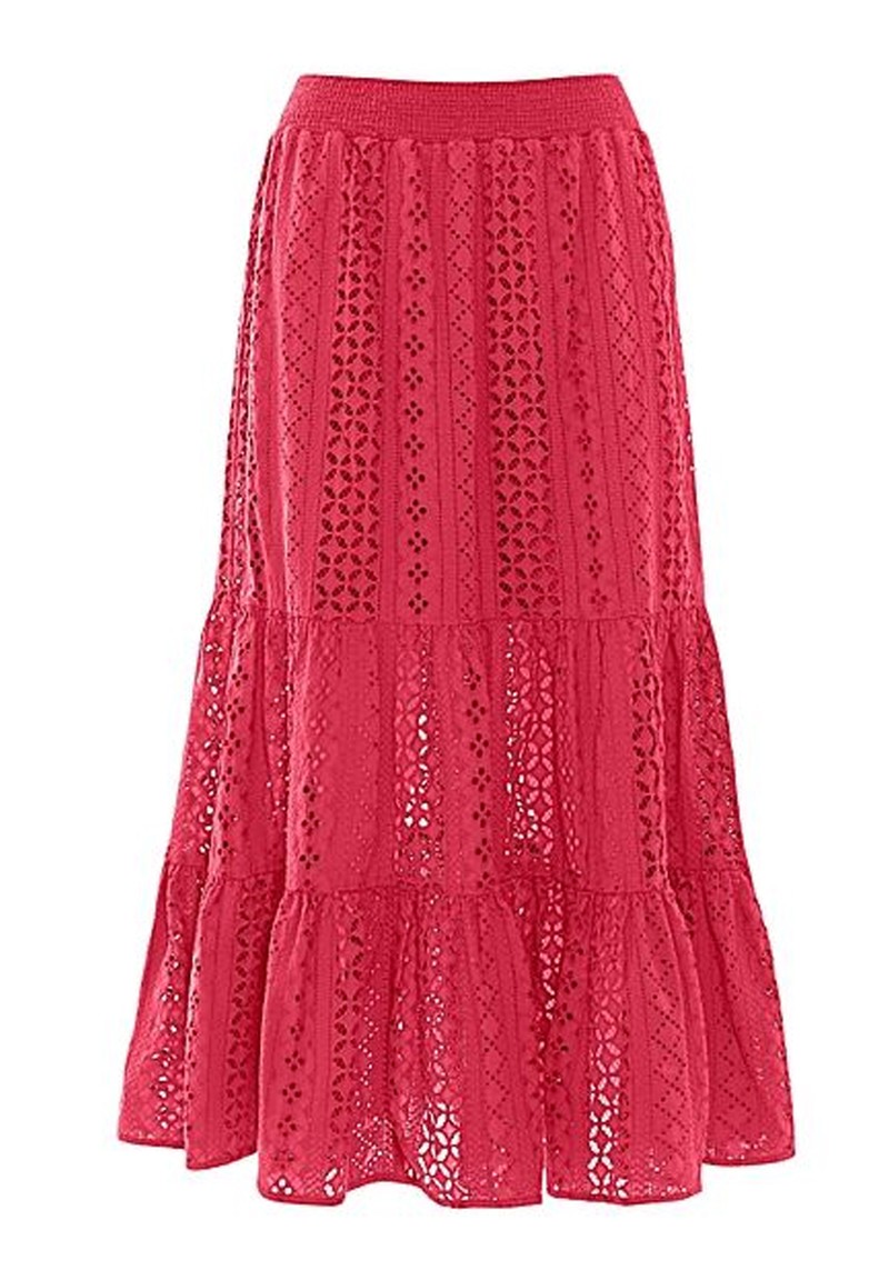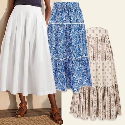 If you’re going to buy one thing this month, a midi skirt (or two) might just be the best investment. Dressed up or dressed down, it’s a useful piece to have in your summer wardrobe. Floaty, tiered styles are one of the more timeless, yet on-trend choices right now, while ditsy prints, broderie anglaise and scalloped edging are the details to note – just add a cropped cardigan or light blouse for an easy, chic look.