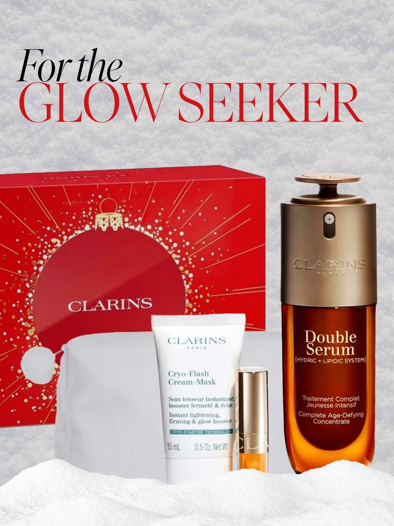 Promising to hydrate, boost glow and protect your skin all at once, the brand’s iconic Double Serum is an easy crowd-pleaser. This set also comes with the Cryo-Flash Mask – one of our favourites for icy freshness – as well as a lip oil for silky comfort.