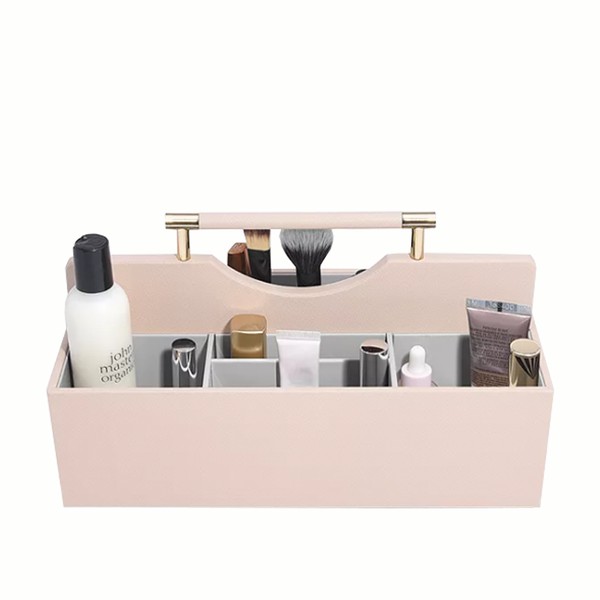 There are endless caddies available now that come with in-built mirrors, carefully placed trays and little nooks and pockets to store all your essentials. A crate can be handy, too. Hay, whose colourful crates have become a firm favourite among beauty influencers, are spacious and chic. Plus, there’s no need to faff with lids and fastenings.