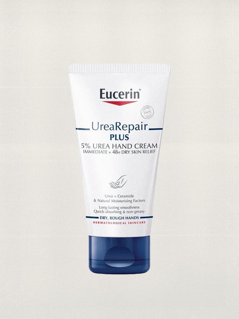 As a facialist, my hands are constantly wet with product and I’m always sanitising them. To keep my skin feeling soft and nourished, I always reach for this hand cream by Eucerin.