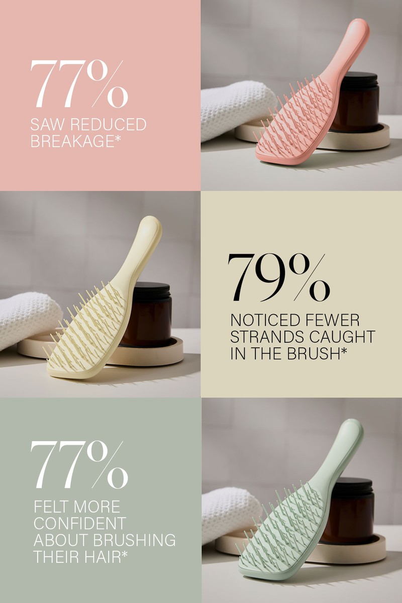 A hairbrush is a hairbrush, right? Not quite. The right one makes a world of difference. To be clear, brushing won’t prevent or reverse thinning, but “when done regularly and gently, it does help,” according to trichologist Eva Proudman. If you have fragile hair, your instinct might be to avoid brushing to minimise stress, but Eva recommends it once a day to keep your hair manageable and healthy. The act itself is important for a variety of reasons: from distributing sebum along the hair shaft and removing shed hairs to preventing tangles and stimulating blood flow to the scalp and follicles – which is vital for healthy hair growth.