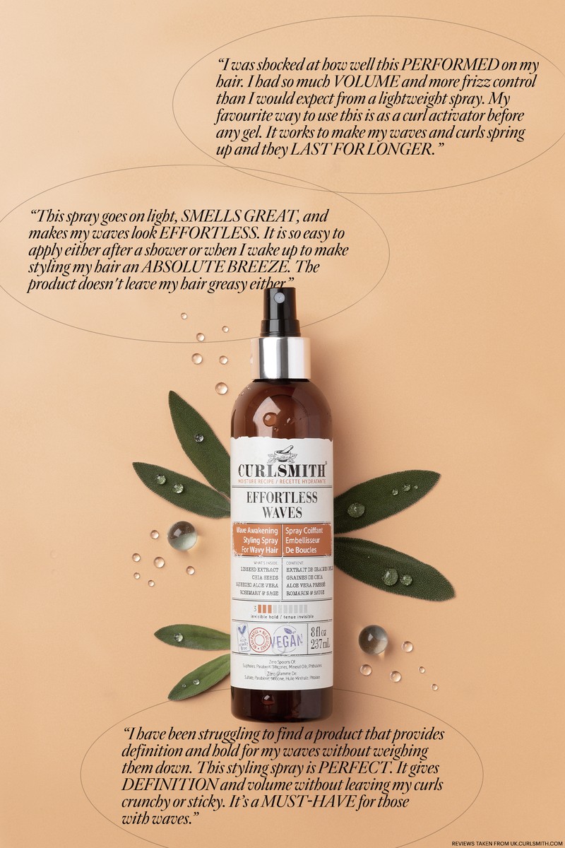 With this in mind, Curlsmith wanted to create a product that did a bit of everything. The Effortless Wave Spray enhances waves instead of working against them and it reduces frizz at the same time. We love how it provides extra body and volume to hair that lasts. Unlike other formulas on the market, it doesn’t ever feel crunchy or drying, thanks to ingredients like aloe vera and amino acids, which strengthen and hydrate hair. Meanwhile, added linseed and chia seeds boost curl definition, while the exclusion of alcohol means hair never feels dry or dull afterwards.