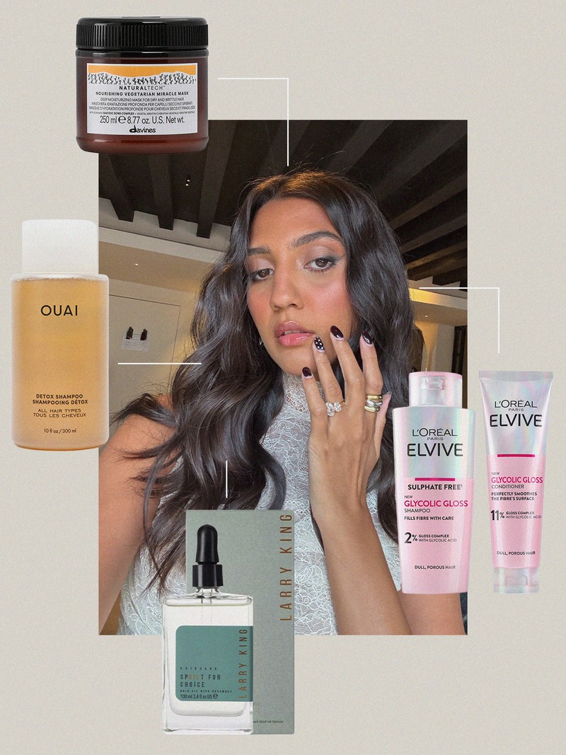 "I use the Ouai Detox Shampoo when I need a proper reset and love how it leaves my hair feeling so clean but not stripped of moisture. For a deep treatment Larry King’s Spoilt For Choice Oil is my ride-or-die (applied generously like a mask, then washed out) but I also use it between wash days for extra shine without the grease. It’s the Davines Miracle Mask when my lengths need a bit of love but day-to-day I swear by L’Oréal’s Glycolic Gloss Shampoo & Conditioner. Used together, they give my hair such a smooth, high-gloss finish."