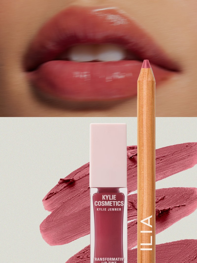 “I love how this pairing creates a naturally full, juicy-looking pout without ever feeling heavy or sticky. First, I use Ilia’s Sketch Hydrating Lip Crayon to create a softly-defined, hydrating base, then I layer the Kylie Cosmetics Transformative Lip Tint over the top to add a sheer wash of colour and a plump, healthy sheen.” – Nikki Wolff, make-up artist