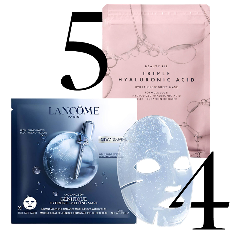 Advanced Génifique Hydrogel Sheet Mask, £39.60 | Lancôme & Triple Hyaluronic Acid Hydra-Glow Sheet Mask, £60 | Beauty Pie