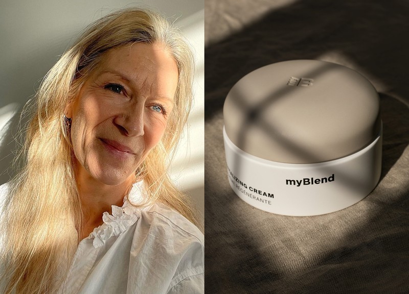 “Post-cleanse, I use a retinol treatment and tend to alternate my evening serums based on my skin’s needs. I’m a latecomer to retinol and I wish I had begun using it years ago, because I’ve seen impressive results – think smoother-looking skin that is fresher and bouncier. I’ve worked much harder on my complexion recently than I did in my 50s and I’ve really seen the difference in its tone and texture. After my retinol, I apply the myBlend Revitalizing Cream – if you’re unsure what to try from the line, make it this. It has a beautiful, whipped texture that is a joy to apply. It’s fairly rich but never suffocating – your skin will drink it up.”