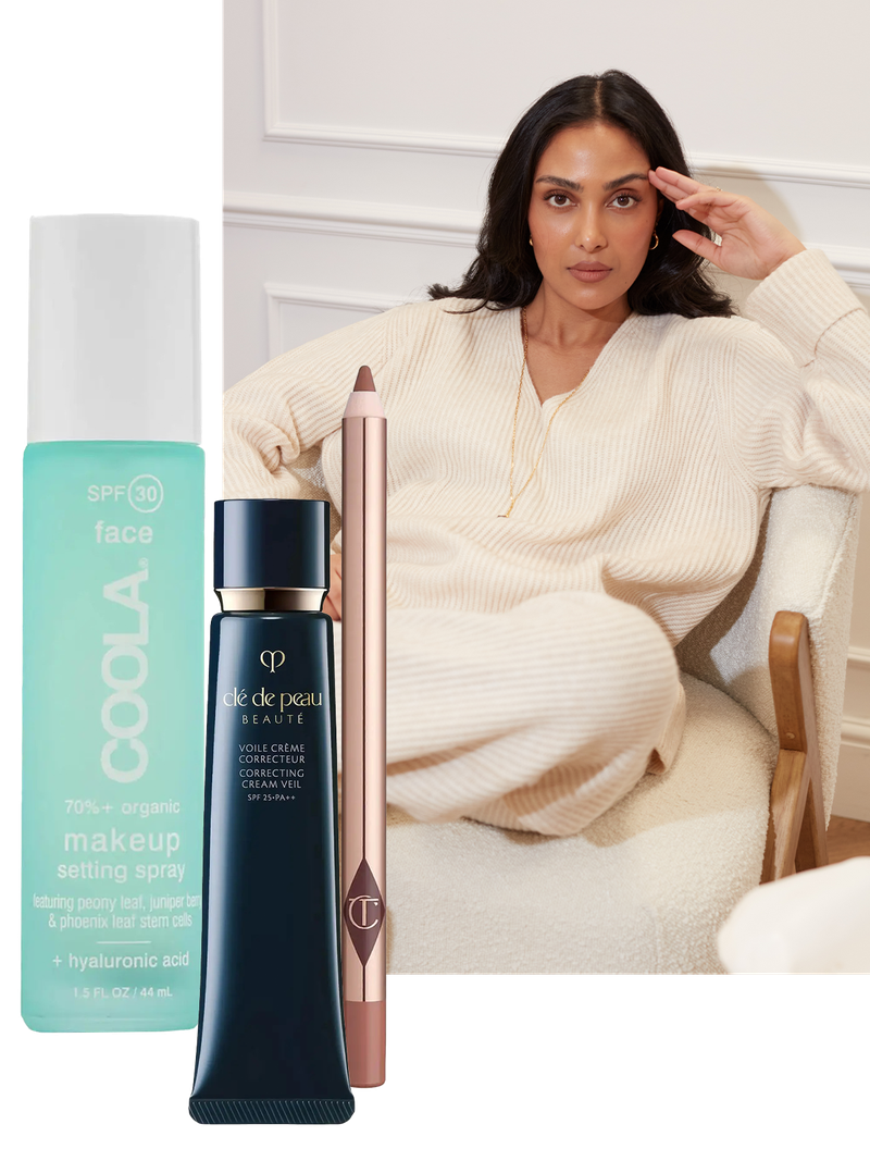 Recently, I’ve been reaching for the Clé De Peau Cream Veil a lot – I’m obsessed with how dewy and hydrated it leaves my skin. The formulation contains glycerine, which pulls in moisture and gives skin the most beautiful radiance. It also doesn’t settle into my smile lines which is a big bonus for me. Another favourite is the Charlotte Tilbury Lip Cheat pencil – it’s absolutely one of my desert-island products. Finally, Coola’s Makeup Setting Spray contains SPF30 and has changed the way I reapply SPF over make-up.