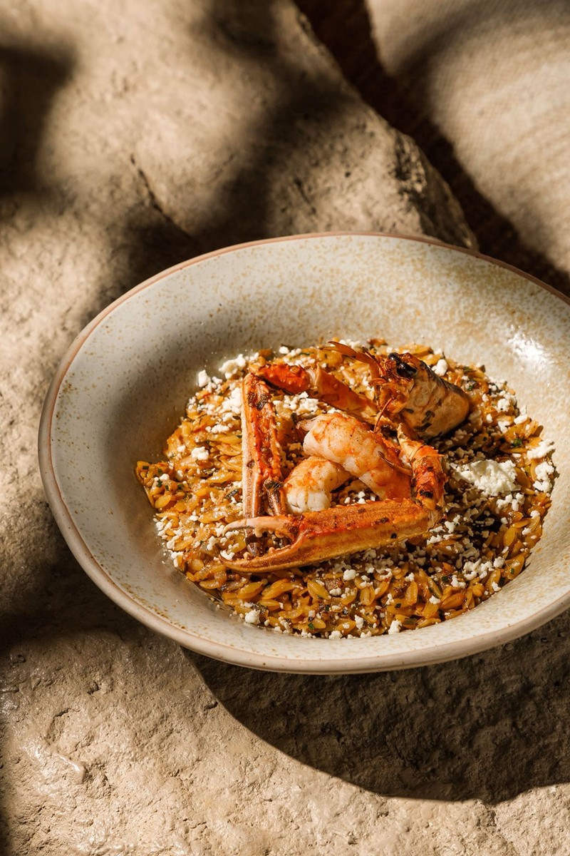 “The orzo pasta with crab meat is a signature dish that brings together the traditional Greek giouvetsi with fresh seafood. It's been a firm favourite at Taverna Ermou in Athens since day one. Our spanakopita dip is a fresh, modern take on the classic Greek spinach pie. Then the charred octopus on fava dip is a dish that evokes the scent of the Aegean Sea and the spirit of the Cyclades islands.” – Panagiotis, Ergon