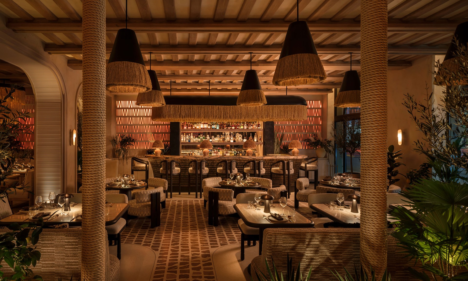 “Maza is a love letter to Athens. We spent a full year working closely with Archer Humphreys on the design, considering every detail and how it would shape the guest experience. We took inspiration from the great restaurants I went to as a child in the 1980s and reinterpreted them for today. We wanted to fit in Mayfair, but feel comfortable and cosy at the same time. There are wicker ceilings inspired by traditional Greek baskets, Mediterranean printed fabrics that echo Greek homes, clay pottery lamps, and ceramic tiles across the floors and walls. We’ve also hung handwritten family recipes from my grandmother throughout the space. There’s even a vinyl listening bar playing 70s and 80s Greek records. All together, it transports you – you really do feel like you’ve stepped into Athens.” – Christina, Maza