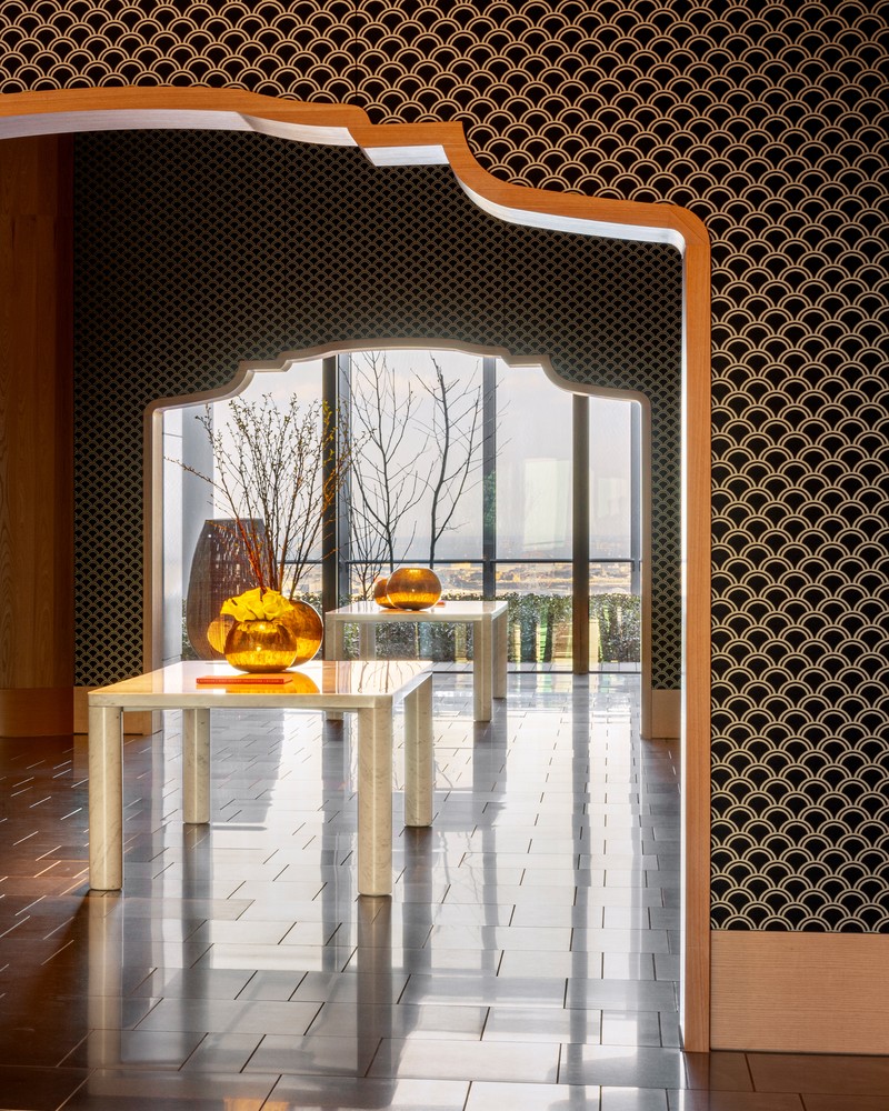Bulgari Hotel Tokyo is spread across the top six floors of a skyscraper in Tokyo’s newly developed Yaesu district. The hotel itself is partly hidden from view, in keeping with the group’s commitment to privacy and discretion. On arrival, guests are taken to a reception area that leads onto a grand entrance way. The group’s Italian architect is behind the striking design: doors are concealed, archways are made from Italian and Japanese marble, and soft colours are complemented by clever lighting. The sheer scale of the property is seriously impressive, especially in a city where space is a considerable luxury.