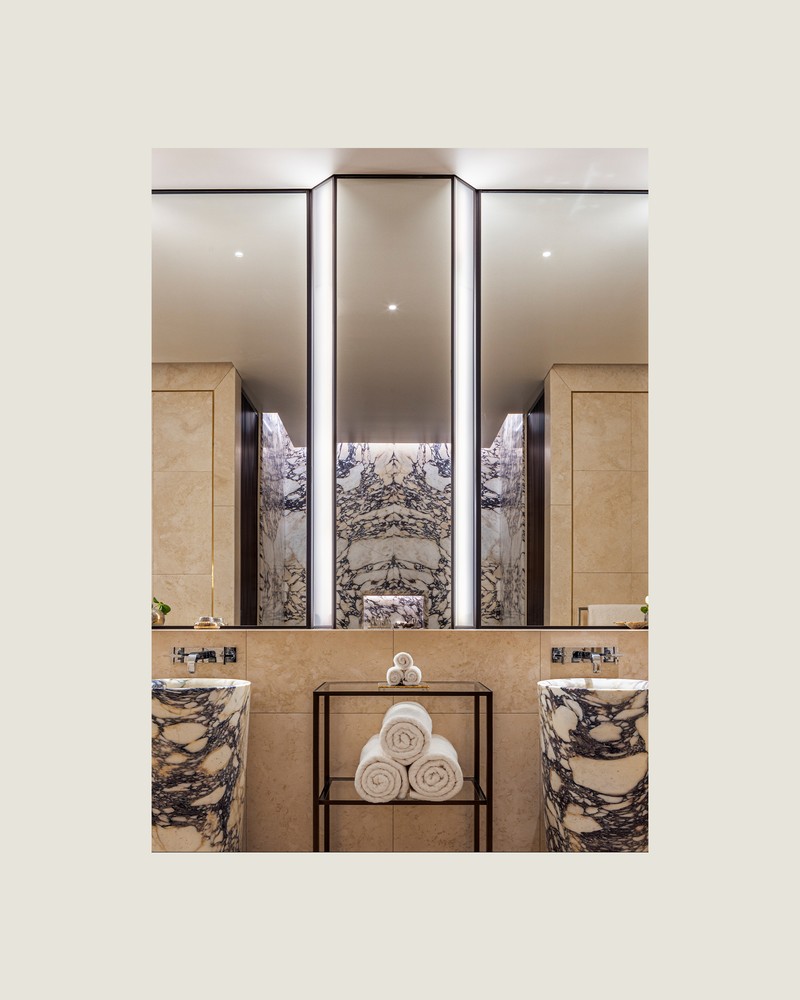Guests can choose from facials, massages and full-body treatments using Augustinus Bader products, as well as ayurvedic treatments with Mauli oils and more – think crystal massages and healing chakra rituals. You can even book shared private experiences in the spa suite, which is home to side-by-side treatment beds, a hammam and an oversized hydro massage tub cladded in Iranian onyx.