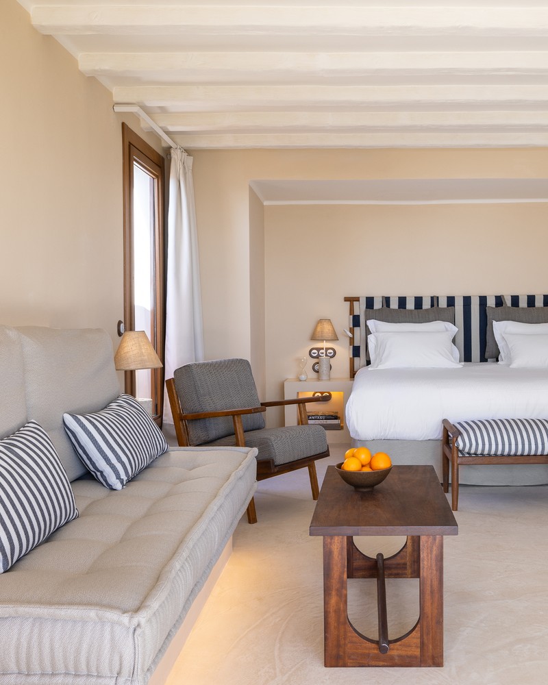 The hotel has just 45 rooms and suites. Some are inside the main building, others are housed in standalone bungalows. Guests will notice how spacious they feel – many are over 50 sq m, which is generous for Formentera – and how private they are too.