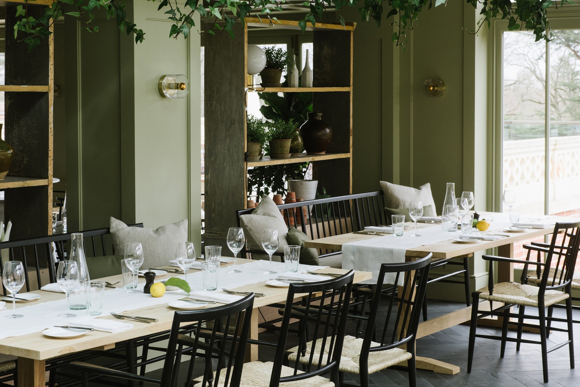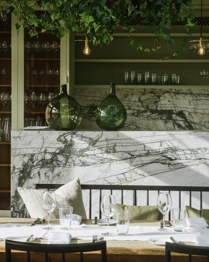 With Skye (of Petersham Nurseries and Spring fame) as exec chef, you’d expect the food to be decorative, seasonal and pared back – all of which it is. Hearth, open to residents only, uses produce grown on Home Farm, which is the only farm on a UK hotel to be 100% biodynamic certified. The menu is changed biweekly to reflect what the garden has to offer, with a focus on zero waste. Hearth is in the former estate stables, and it makes the most of the high-ceilinged space with tasteful arrangements of dried flowers hanging from the walls, sheepskins draped across dining chairs, and a huge fireplace that gives the restaurant its name. The open fire also dictates a lot of the menu –we tucked into excellent charred tomato flatbread, grilled Calcot onions, and a bowl of hand-shaped cavatelli and beef cheek ragu that would rival the best Italian restaurants.