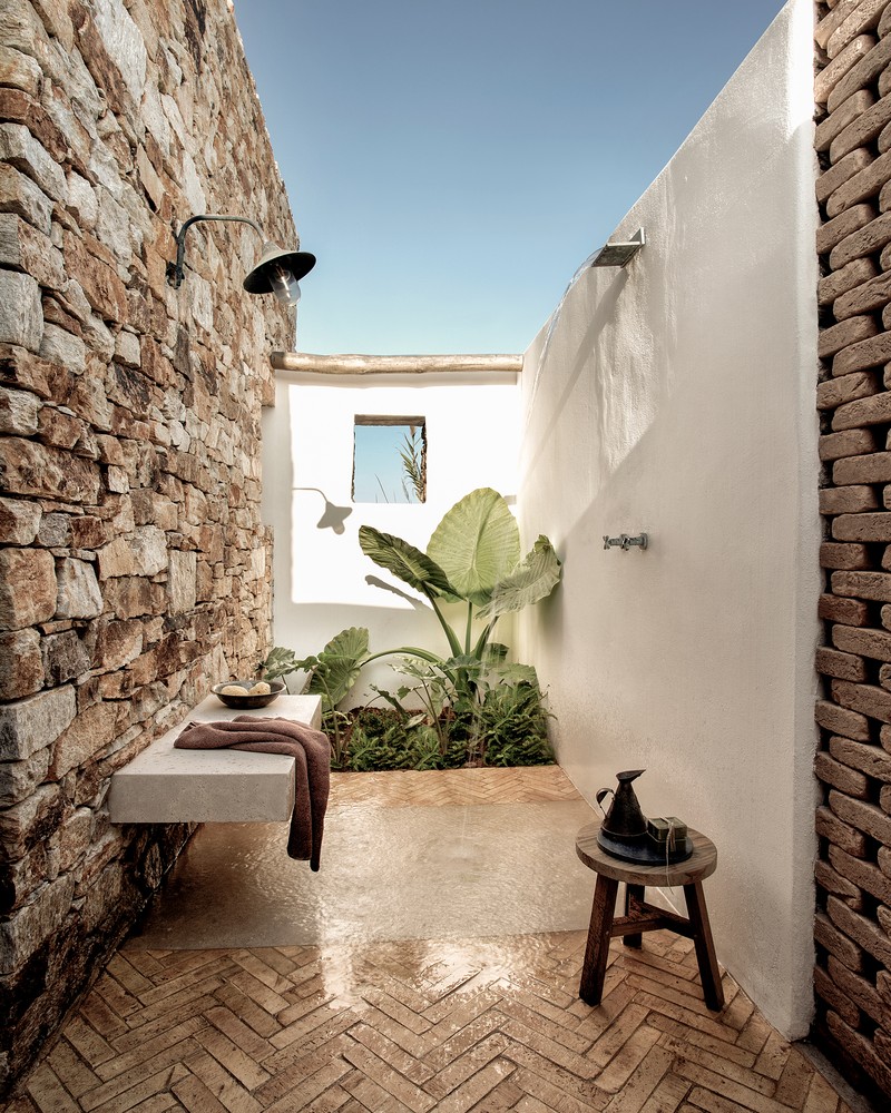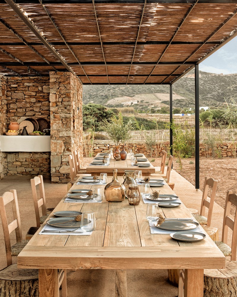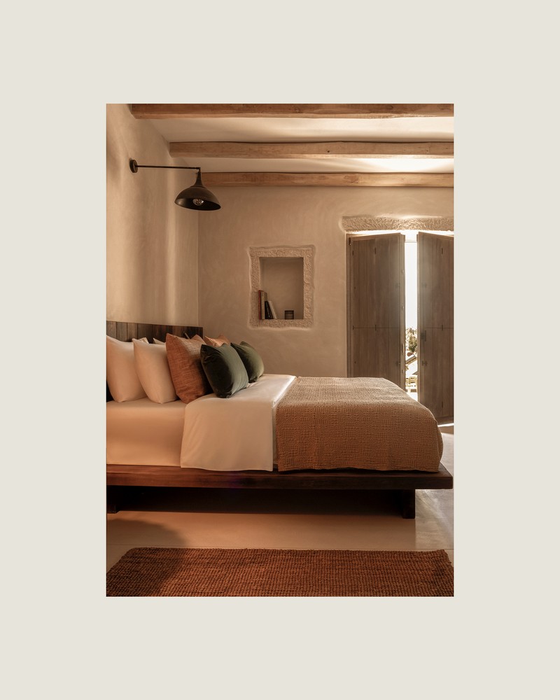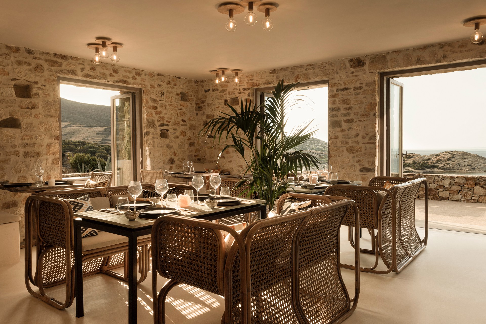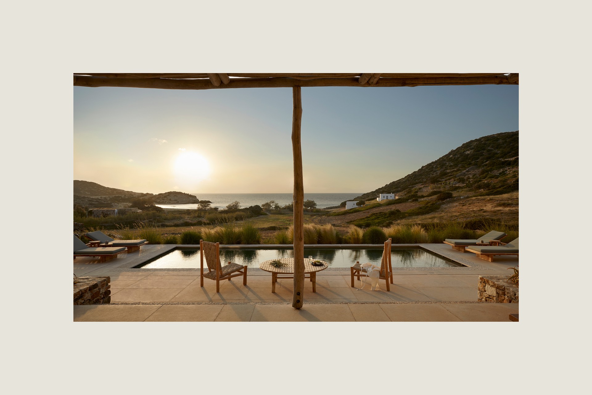 Accommodation is a loose cluster of low-slung villas built in local stone using traditional techniques. Expertly blended into the surrounding landscape, each one has a pool, terrace and outdoor shower. Privacy comes not from high walls but from tall grasses that sway between the properties. Most are designed for two or three guests, though a couple of larger ones can comfortably take a family of five. Bigger groups should look to the eight-bed Beach House, new for summer 2025 on the other side of the island.