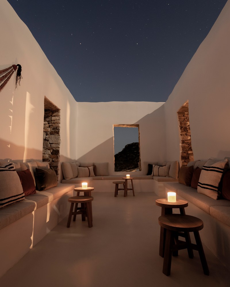 The longer the journey you make into Greece’s Cyclades, the more you are rewarded. Unless you're arriving on the Rooster's helipad, you’ll probably reach Antiparos by ferry from Paros, which is at least three hours by sea from Athens. This is the deep Cycladics. Barely seven miles long and less than three wide, Antiparos is an island of few cars. Once the Rooster has transferred you from the port to its reception, all-terrain buggies or e-bikes are more fun and fitting ways to get around.