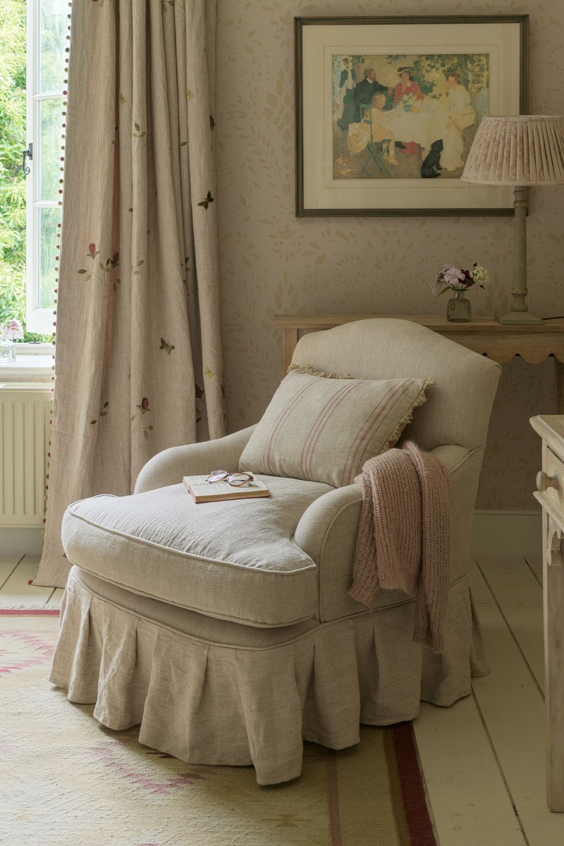 We’ve long loved Susie Watson Designs for its cosy colour palette and charming prints. Four new armchair designs have joined the furniture collection – the Lavganya is a feminine chair with a sumptuous seat and ornate hand carving; the Lydia has a deep seat, high back and pretty skirt; the Bergere chair has refined carving, an exposed frame on the rear and a sumptuous feather cushioned seat; and the Siddhant chair has a lovely colonial feel with hand-caning and detailed carving, perfect for a conservatory or garden room.