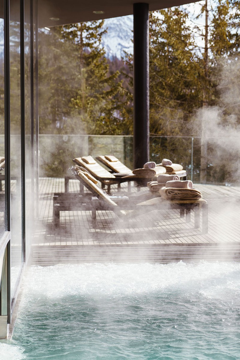 The Dolomites have been enjoying serious airtime this year, as travellers discover their breathtaking scenery for summer alpine escapes. Forestis is the standout destination in the region – though it’s in winter that this mountain retreat truly comes into its own. In South Tyrol, on the southern slope of the Plose mountain, the property juxtaposes bold, contemporary architecture against a truly beautiful backdrop. The property features 62 luxury suites, all with panoramic views, and offers an extensive range of year-round wellness packages and curated experiences, including ski-in, ski-out access to the slopes. Famed for its innovative ‘Forest Cuisine’, head chef Roland Lamprecht only uses seasonal, locally sourced and foraged ingredients. All this is served in a restaurant with a tiered layout, which offers every diner a front-row view of the mountain vistas. After a day of skiing or snowshoeing, be sure to check into the Forestis Spa. Decorated in natural materials and relaxing tones – much like the rest of the property – the concept is based on native trees: mountain pine, spruce, larch and Swiss pine.