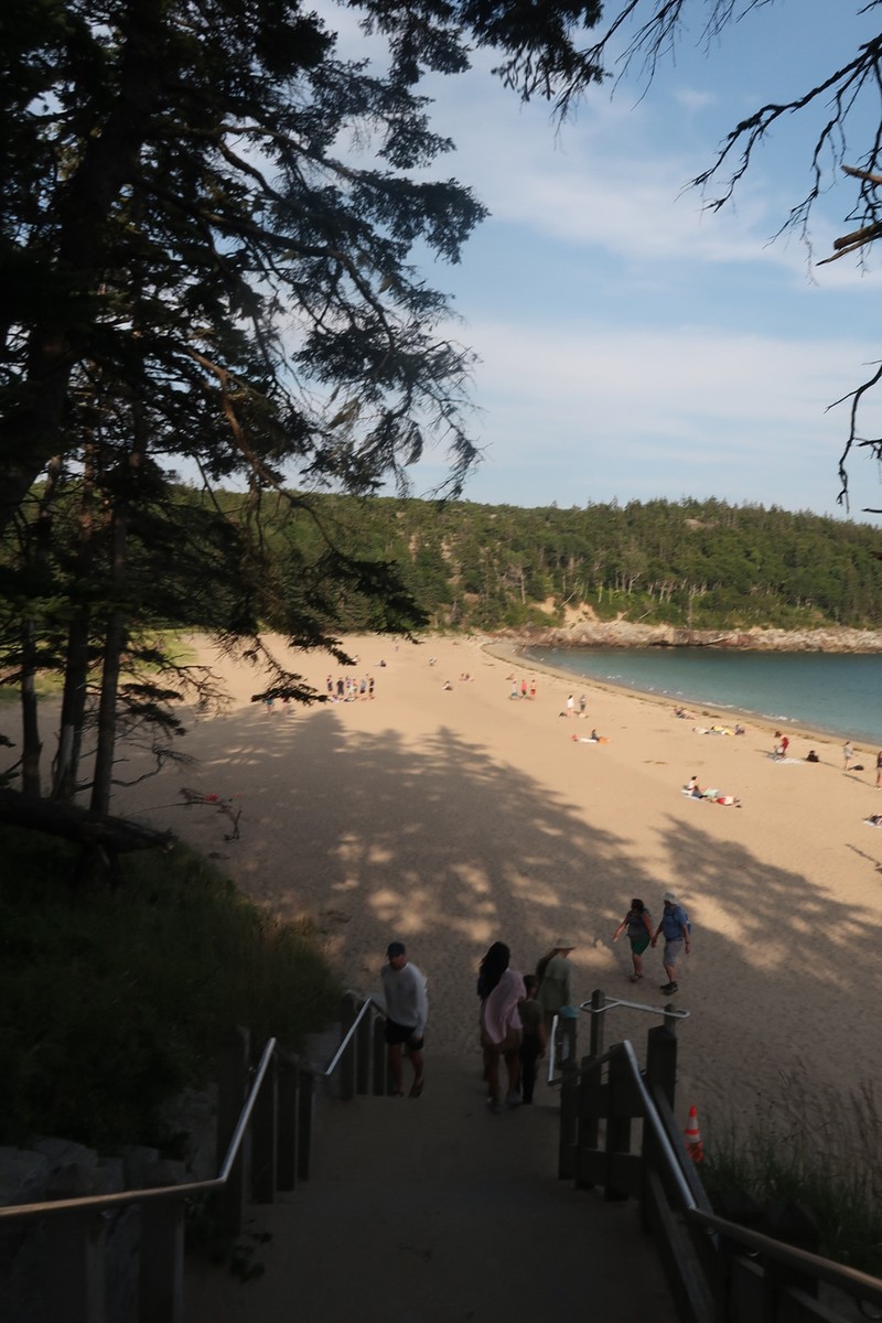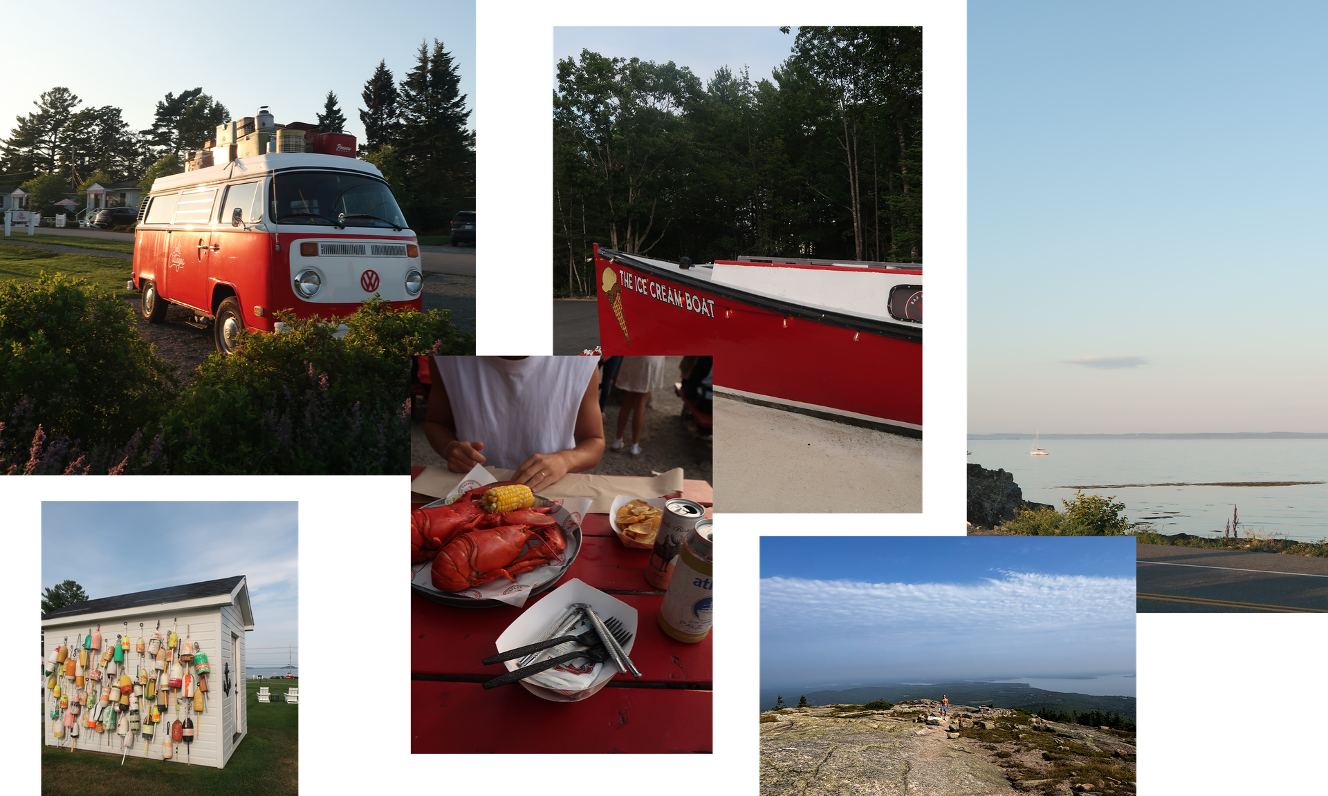 The next few days were made up of challenging hikes, bracing sea swims, perfect lakes and breathtaking views. You can’t move for tourists in some national parks and after battling the crowds in Yellowstone last year, the almost complete isolation we felt in Acadia – as well as the coastal setting – was not taken for granted. We refuelled each morning with blueberry pancakes at Jordan’s Restaurant, a no-frills diner, and ate dinner both nights at Sweet Pea’s Café in Bar Harbor, a festoon-draped winery that makes homemade pizzas and where children run through the vineyards as the sun sets. We had a slightly disastrous attempt at dinner at a local lobster restaurant but returned a few hours later for ice cold beer from giant buckets and blueberry pie and ice cream served from a docked boat and marvelled in the absolute idyllic feeling that this leg had brought us.