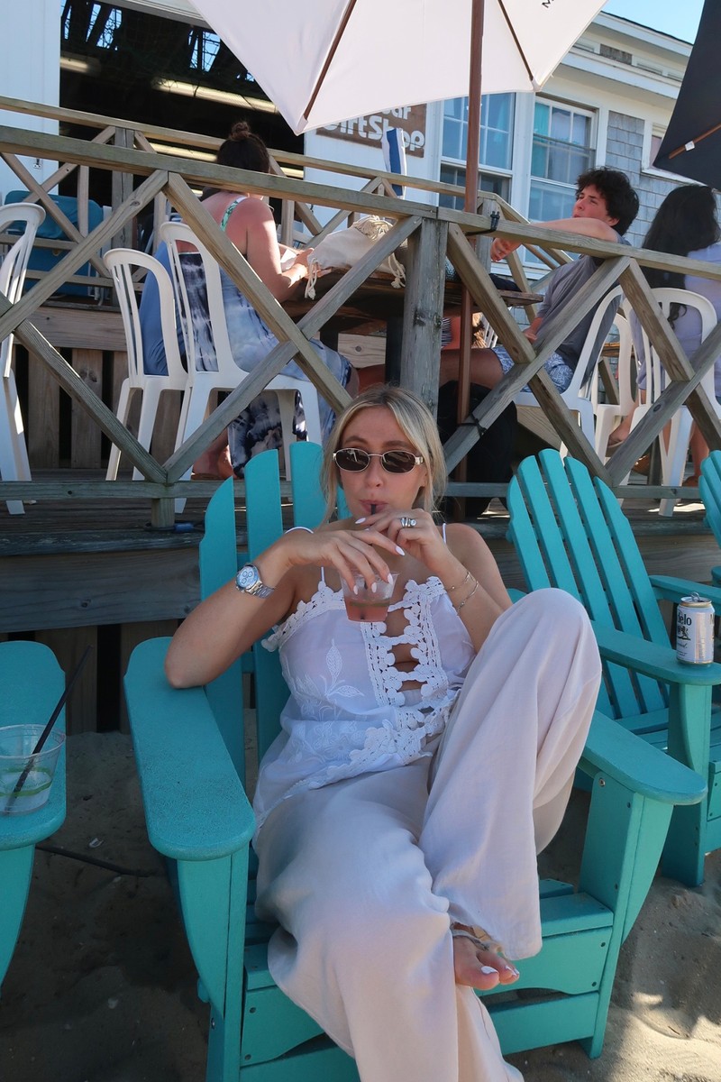 Pokey bedroom aside, there was nothing we didn’t fall head over heels for in Nantucket. Morning walks along cobbled streets lined with vintage Land Rovers, American flags and the east coast’s elite pouring out of coffee shops and Pilates classes were only made dreamier by sugared vanilla iced lattes and the most glorious climate – like London on the perfect June day. Our time was filled with lobster rolls from Walter’s Deli (the best we had until the end of our trip); ice cold oysters and frosé at the seriously cool Cisco Brewers, a buzzing venue that hosts food trucks and live music every afternoon; crispy fish sandwiches in the backyard of 167 Raw; hot honey crisps from Nantucket Crisps (trust me); and long bicycle rides to the other end of the island to visit Martha’s, an iconic store and restaurant. Each evening was ushered in at Sand Bar, a low-key but electric-atmosphere spot on Jetties Beach. Each dinner finished with the creamiest ice creams from The Juice Bar or Jack & Charlie’s, both of which have queues around the block at all hours.