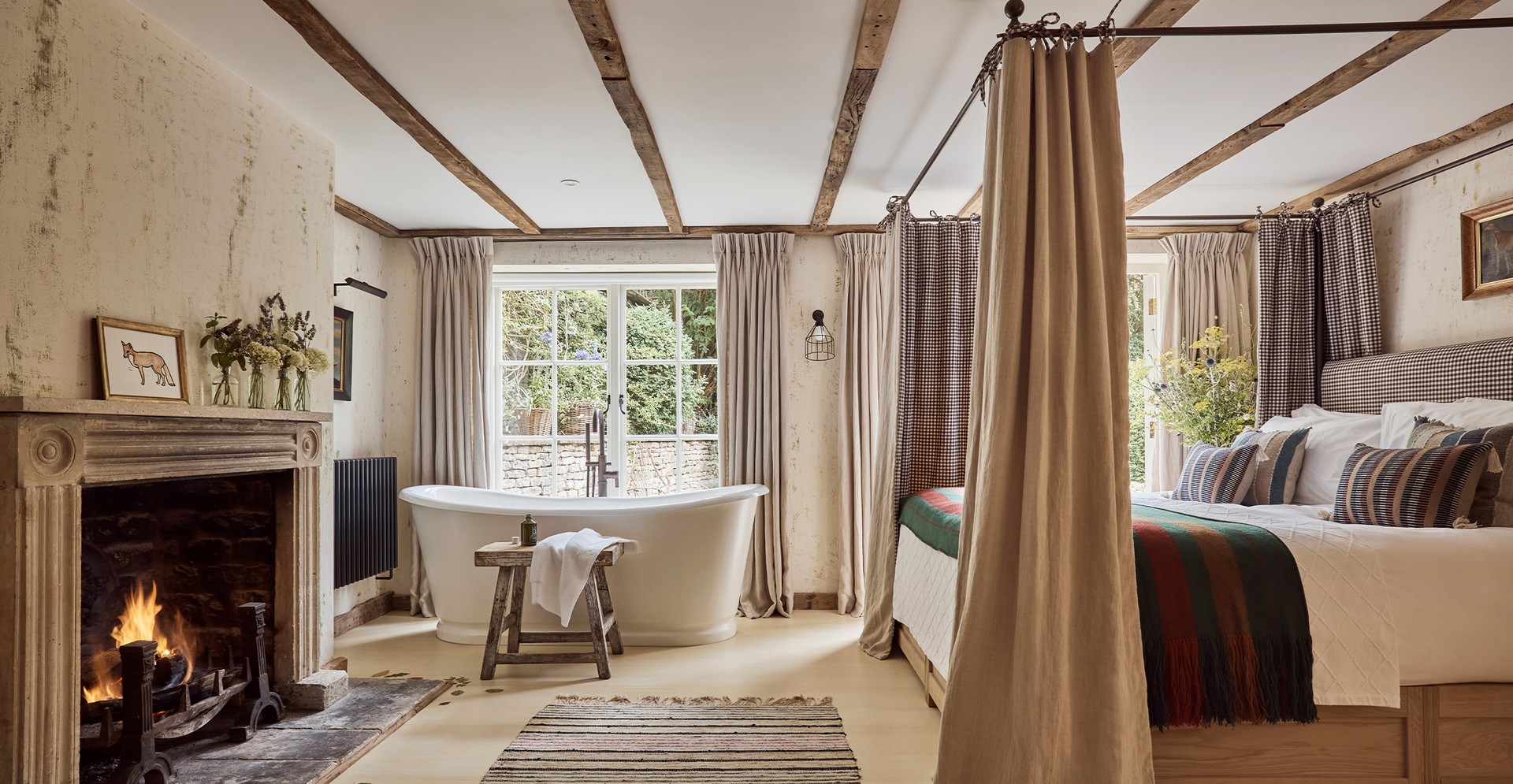 The Fox is a new pub with rooms. In the picturesque Cotswolds village of Oddington, it’s been restored by Carole Bamford, so you can expect elegant interiors and luxurious touches. Set in a honey-coloured 16th-century building, there are six suite-style bedrooms with living areas featuring sofas, armchairs, desks and plenty of books. Natural materials bring a country feel to each room, with colours and fabrics that reflect the beautiful Cotswolds landscape – think earthy tones and bronze finishes. We’ve got our eye on the Wild Meadow room which includes floral prints by Hugo Guinness and overlooks the wildflower rooftop. Guests can tuck into traditional dishes at the pub downstairs, and settle in by the fire during the colder months. There’s also a terrace and garden for eating outside.