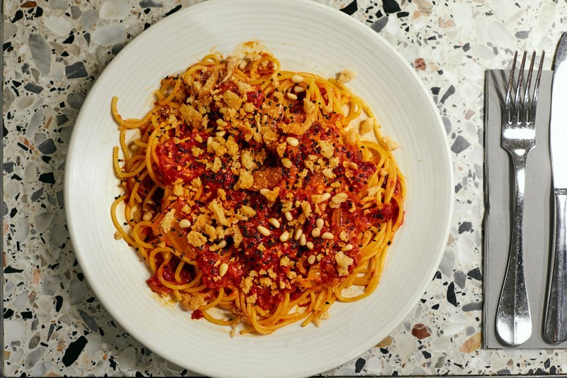 Pastaio, the Soho spot known for its fresh pasta, has partnered with vegan chef Meera Sodha on a limited-edition Veganuary pasta dish featuring kimchi, tomato, sesame and a touch of gochugaru for heat. For each plate sold, 50p goes to The Trussell Trust charity that’s working to end UK hunger and poverty. Make a feast of it and dip into the restaurant’s regular green menu – we’re looking at the Aubergine caponata.