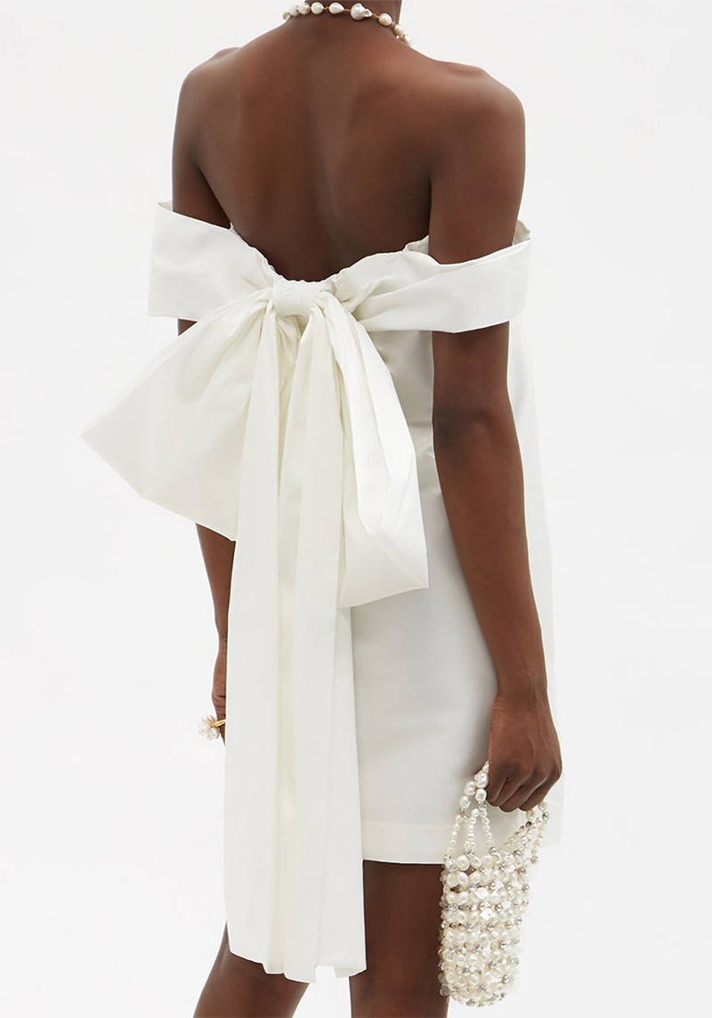 According to Etsy, searches for bow-detailed bridal dresses and accessories have reached new levels. No wonder, with a slew of pretty minis, heels, bags, headbands and more adorned with voluminous white bows out there now. Here are 18 styles to get you started...