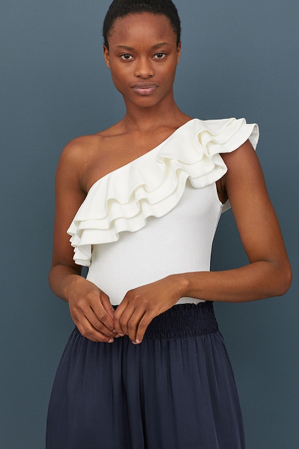 For a clean and sculpted summer silhouette, whether it's a one-shoulder style or a racer back, bodysuits are big business right now. Wear monochrome bodies with linen trousers, tailored shorts and midi skirts with square and plunging necklines for additional style points.