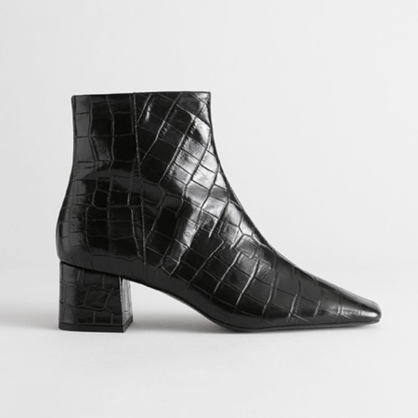 Dressed up with a pair of leather shorts and tights or styled with some black leggings, croc-effect boots are THE PERFECT WINTER ACCESSORY.