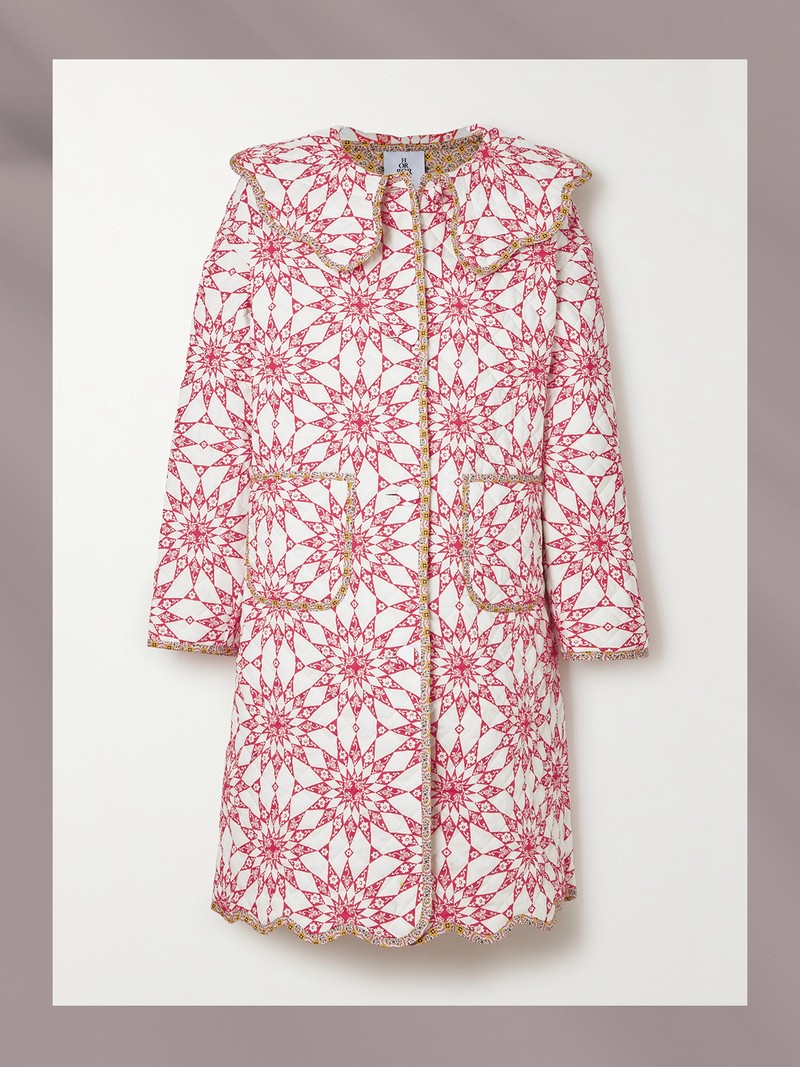 Natalie Scalloped Quilted Printed Cotton Coat,