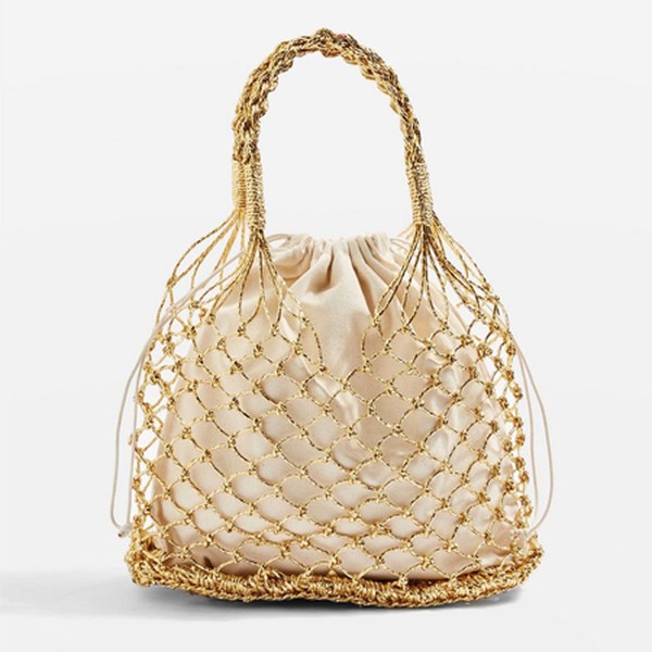 Dress up a statement colour slip dress with slick gold accessories – leaf motif earrings and an elevated basket bag score extra modern points.