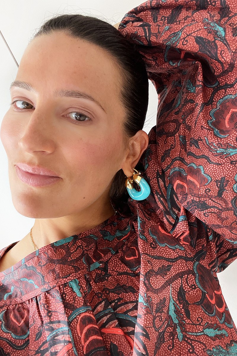 Sometimes it really is the smallest details that make the biggest difference. I've been hankering after a pair of Lizzie Fortunato acrylic hoop earrings for some time but couldn't make up my mind what colour to go for. This Ulla Johnson top, bought a couple of seasons ago in the sale, helped me decide. I was looking for something to make the print pop for spring and ordered a turquoise pair. I’m obsessed with the colour, but also know from experience that turquoise is one of the most versatile shades. They feel statement fun, and elegantly boho.