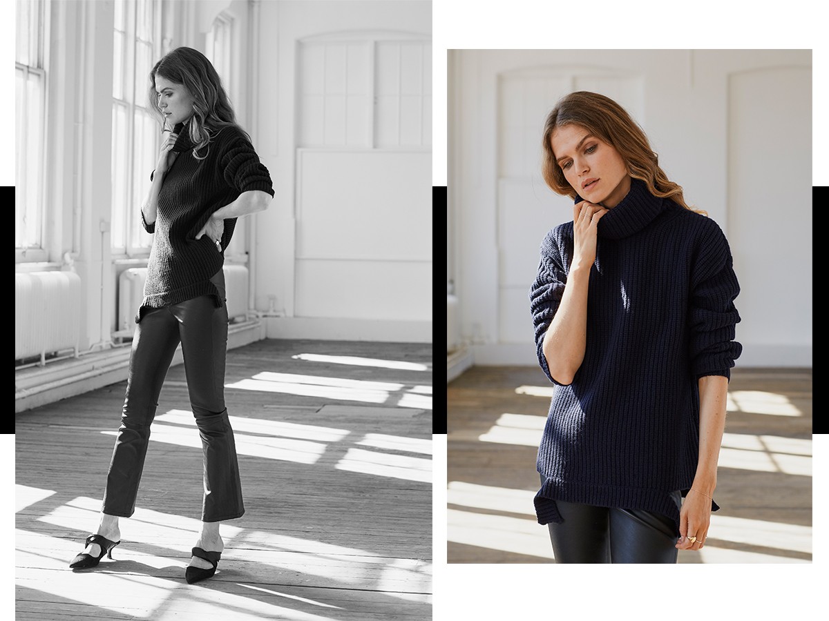 Naomi Cashmere Turtleneck Sweater, £175 | Lena Leather Midi Skirt, £295