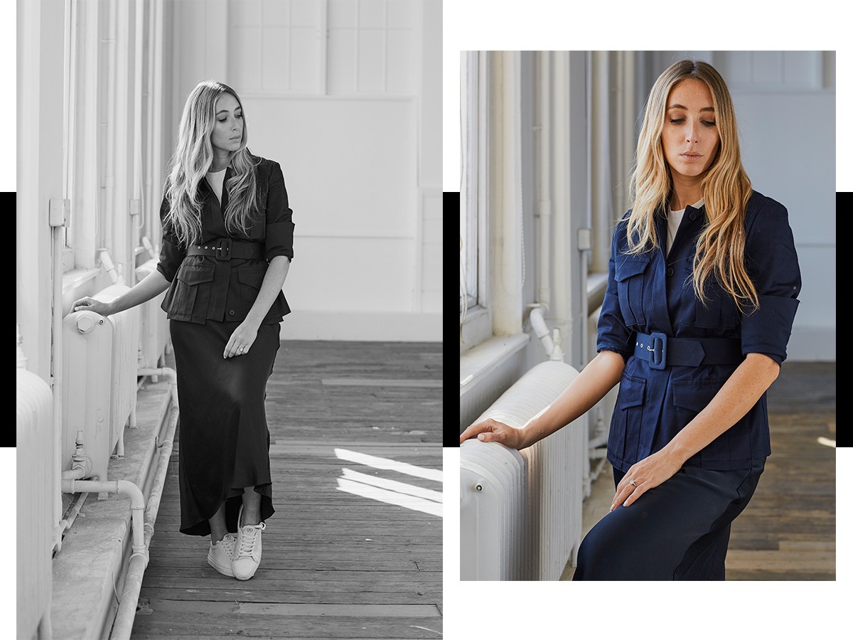 The khaki shacket may be prolific, but we love this navy belted version for a pulled-together weekend look.