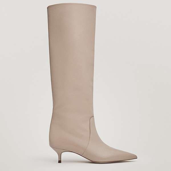 If you’re looking to inject some colour into your winter wardrobe, a pretty pink cardigan layered over a ruffled blouse is an easy win. Give the combo some edge with acid wash denim, while white long boots will make everything feel more directional. Here’s how to get the look, whatever your budget…
