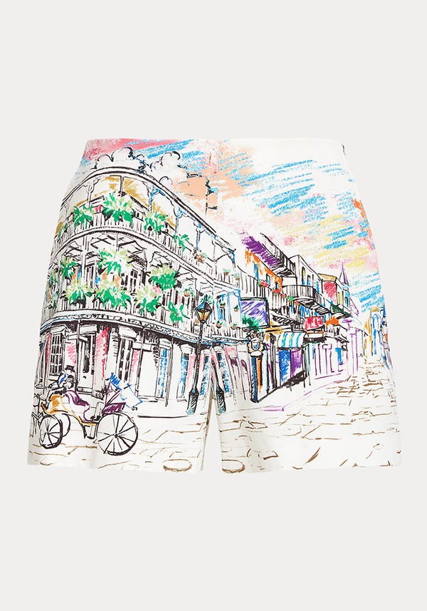 “I’ve always loved a silky co-ord. This playful French Quarter print lends itself effortlessly to long summer days and nights. Chunky gold and woven slippers give it a cool, modern edge.”