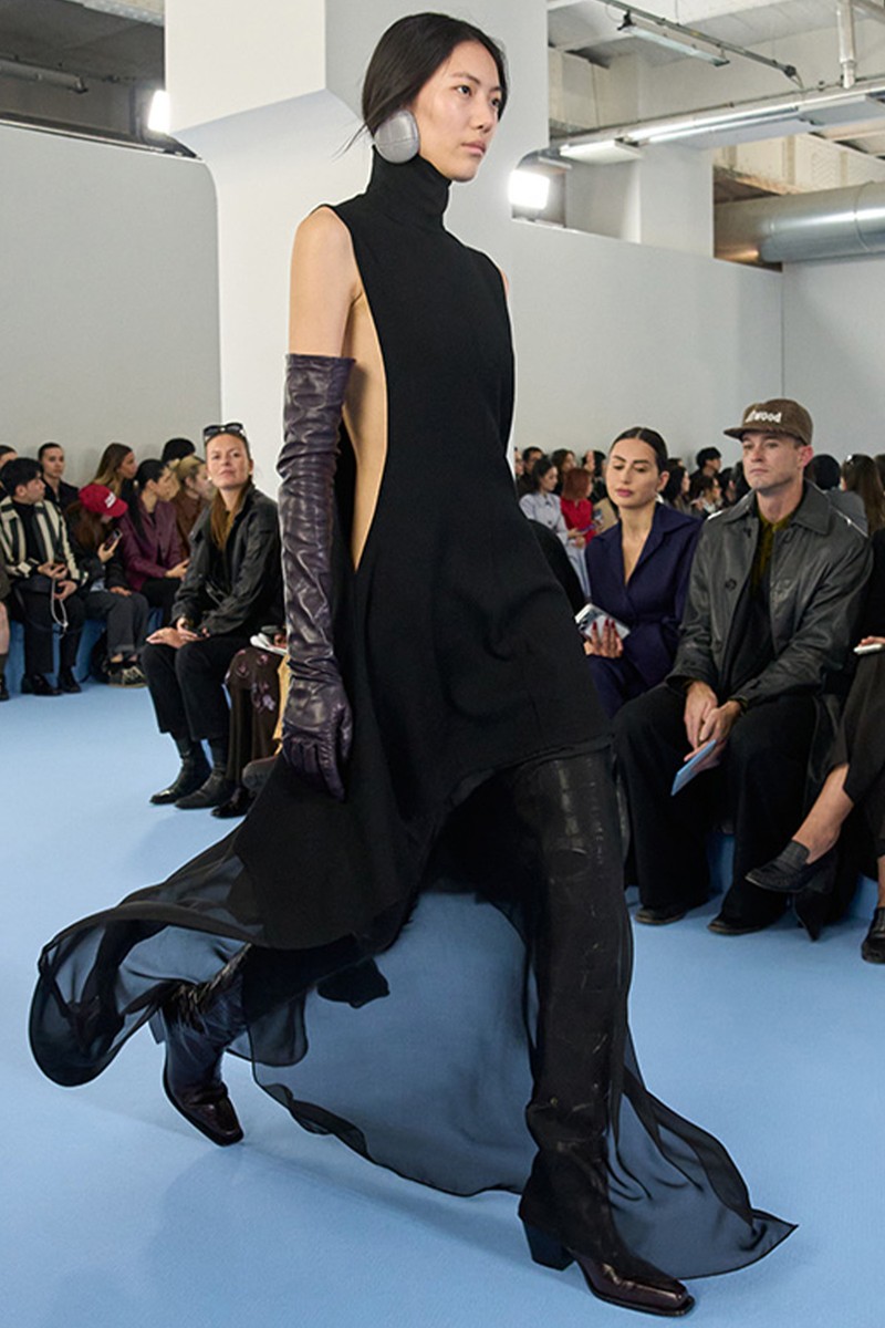 Jil Sander’s AW26 show was a masterclass in quiet confidence. Clean lines, sculptural tailoring and a muted colour palette featured heavily, with fluid coats and tailored suiting leading the way. Luxe textures – from brushed wool to buttery leather – added depth without disrupting the brand’s signature minimalism. Understated luxury at its best.