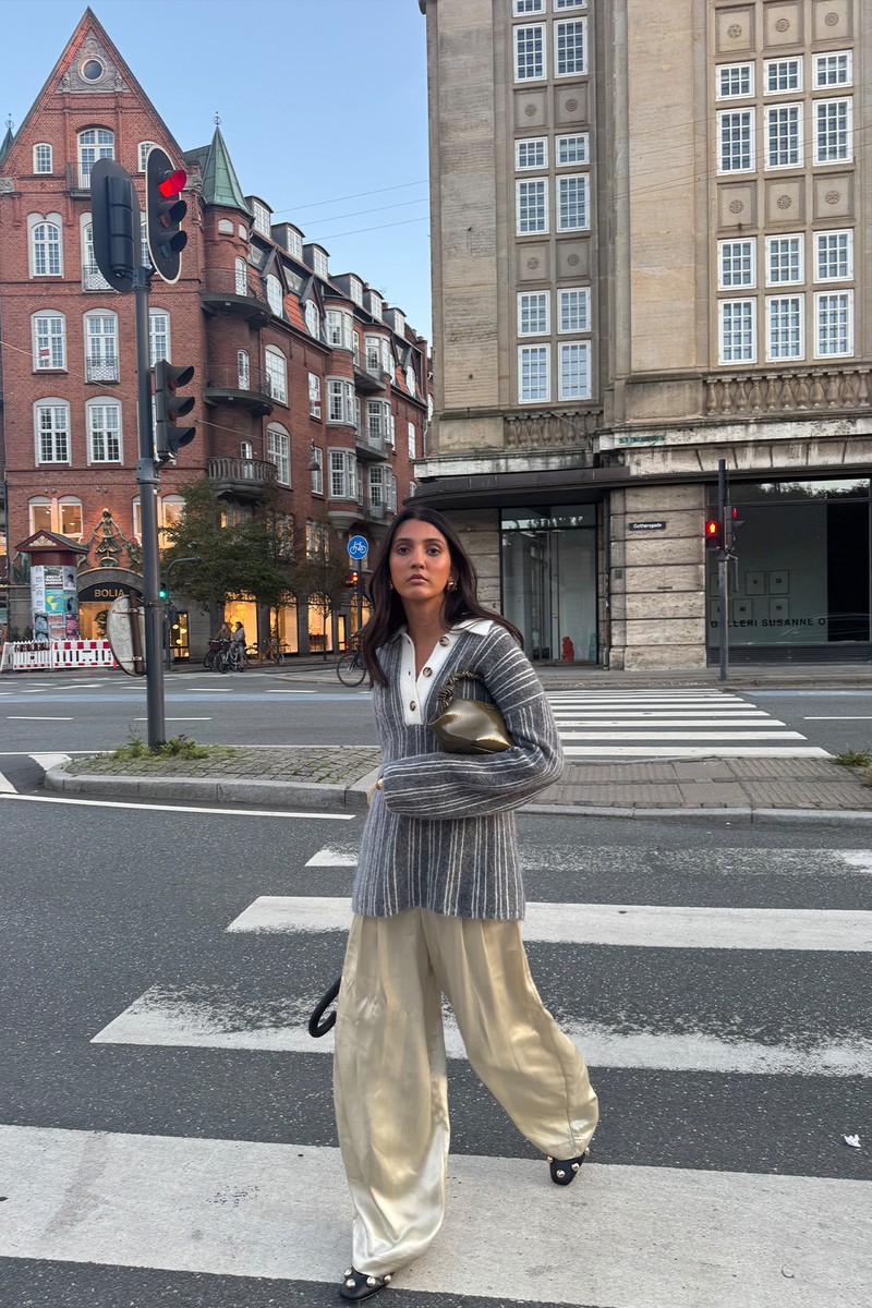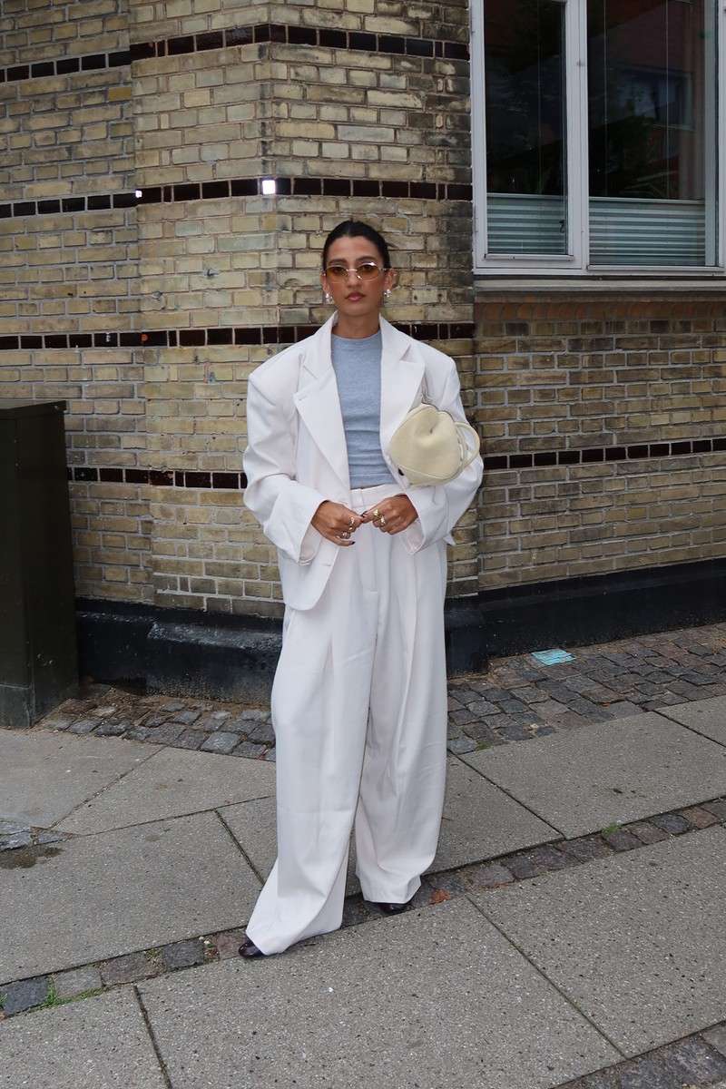 Monday officially marked the start of CPHFW – and the day kicked off with a boat breakfast hosted by Free People (FP). I wore a floaty embroidered top, pink linen trousers, micro heels and a butter yellow jacket, plus a new beige FP suede bag that held all the essentials. Cruising through the canals was the perfect intro to the city – and a reminder of Copenhagen’s two fashion moods: minimal Scandi chic and bold dopamine dressing. The FP crowd definitely leaned into the latter. After the CPHFW Opening Reception, I changed into my Atelier Ninety Five suit and flat mules before heading to the OpéraSPORT show.