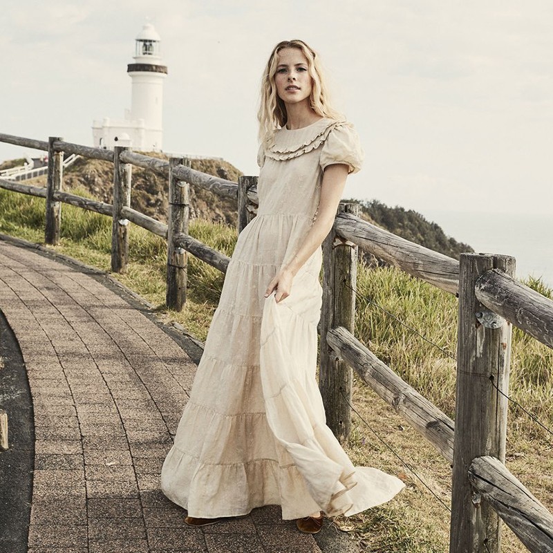 Even if you haven’t heard the name Doen, chances are you’ve scrolled the brand on Instagram. The Cali label has become a hit with social media stars thanks to its impossibly romantic, feminine aesthetic – think LoveShackFancy for boho types. With prairie style high on the hit list for spring, it’s the brand well worth knowing.