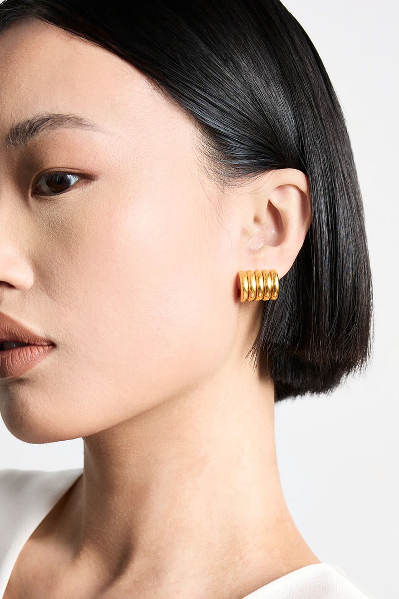 Cult belt brand Déhanche is venturing into the world of jewellery, bringing its signature sculptural aesthetic to a new collection of artisanally-crafted pieces. Each design echoes the brand’s architectural sensibility, with pieces available in gold, silver and mixed metals. The Hollyhock Earring reimagines Déhanche’s iconic belt, the Brancusi Cuff nods to the fluid curves of the artist’s brass works, the Hollyhock Necklace transforms signature rings into sculptural form, and the Tetra Earring draws inspiration from the hand-hammered buckle of its namesake belt.