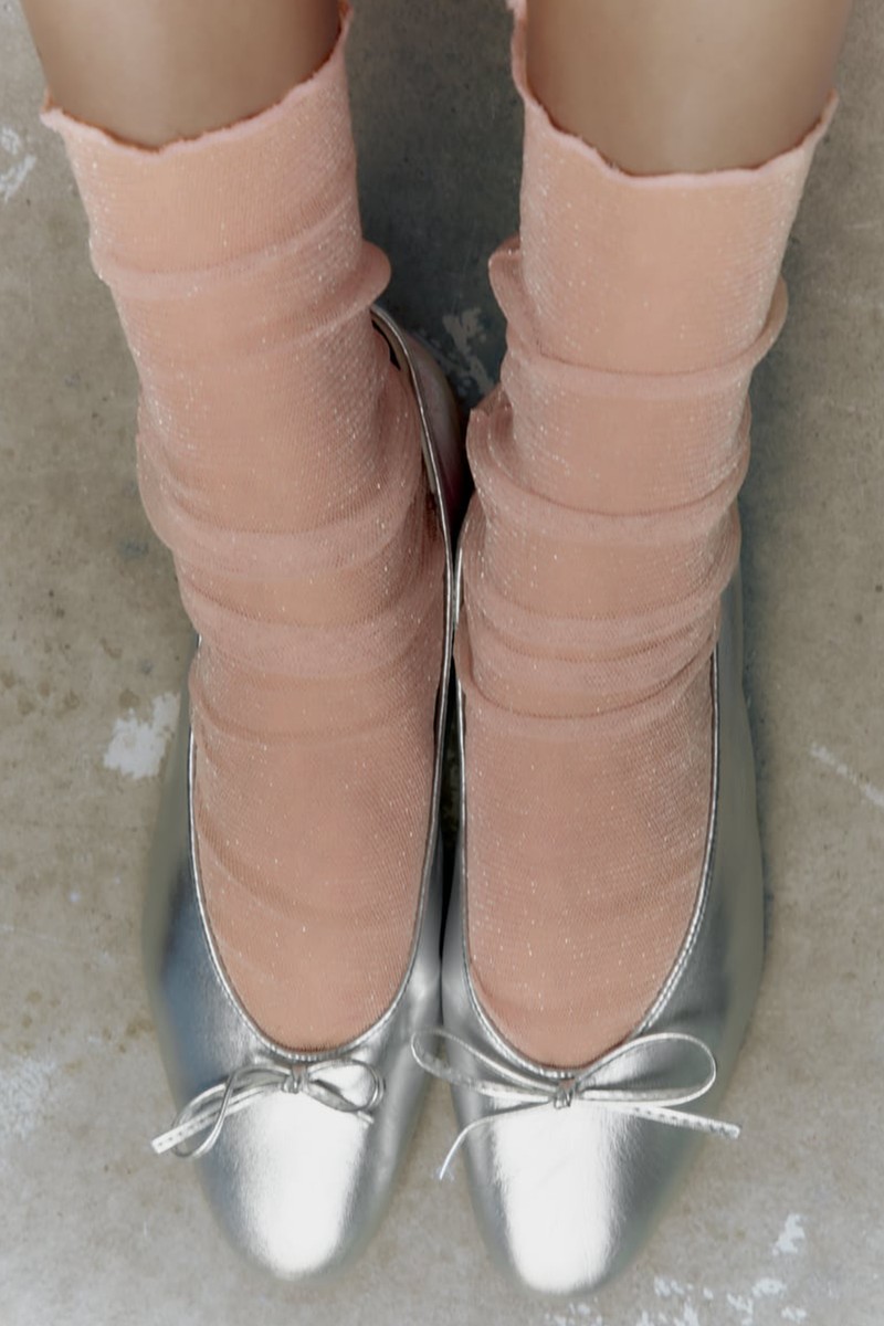 Style a pair of sparkly socks with some platform heels to ADD A FUN TOUCH TO YOUR LOOK.