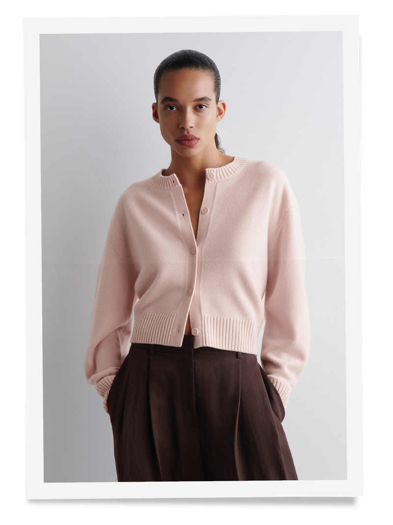 Pale pink is a subtle way to incorporate some colour into your new-season outfits – we love it paired with chocolate brown.