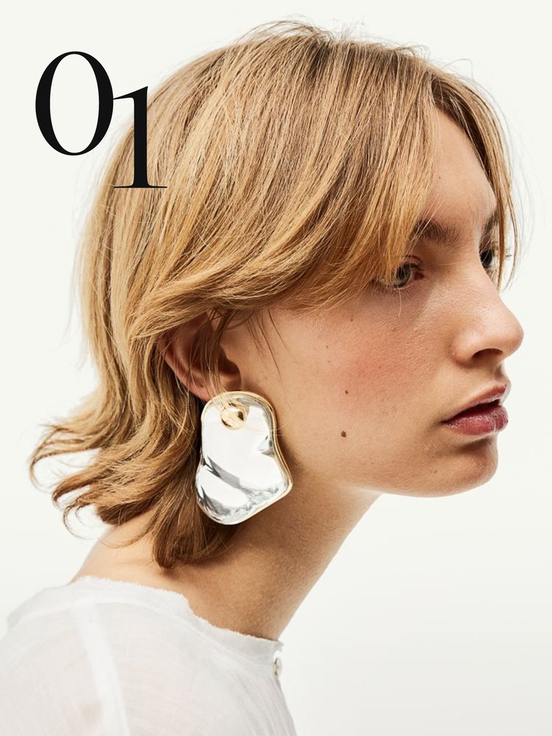 Sculptural earrings are a grown-up way to accessorise. Go for mixed metals for an on-trend look.
