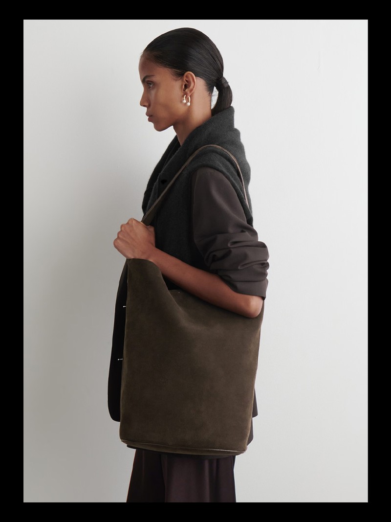 A subtle nod to The Row, this suede bucket bag from COS strikes the perfect balance between form and function – practical enough for every day, but the soft suede adds that touch of luxury.