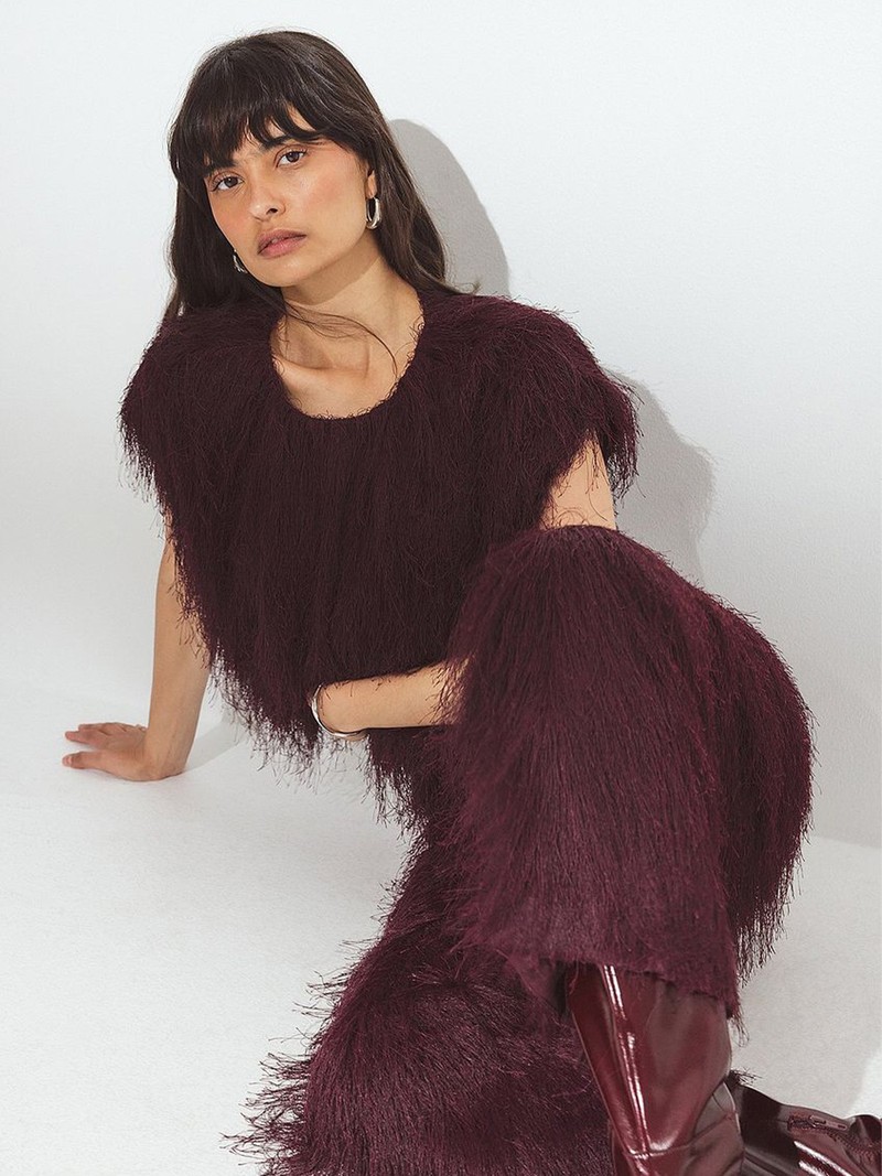 Taking the fringed trend one step further, this fuzzy co-ord is all about head-to-toe texture.