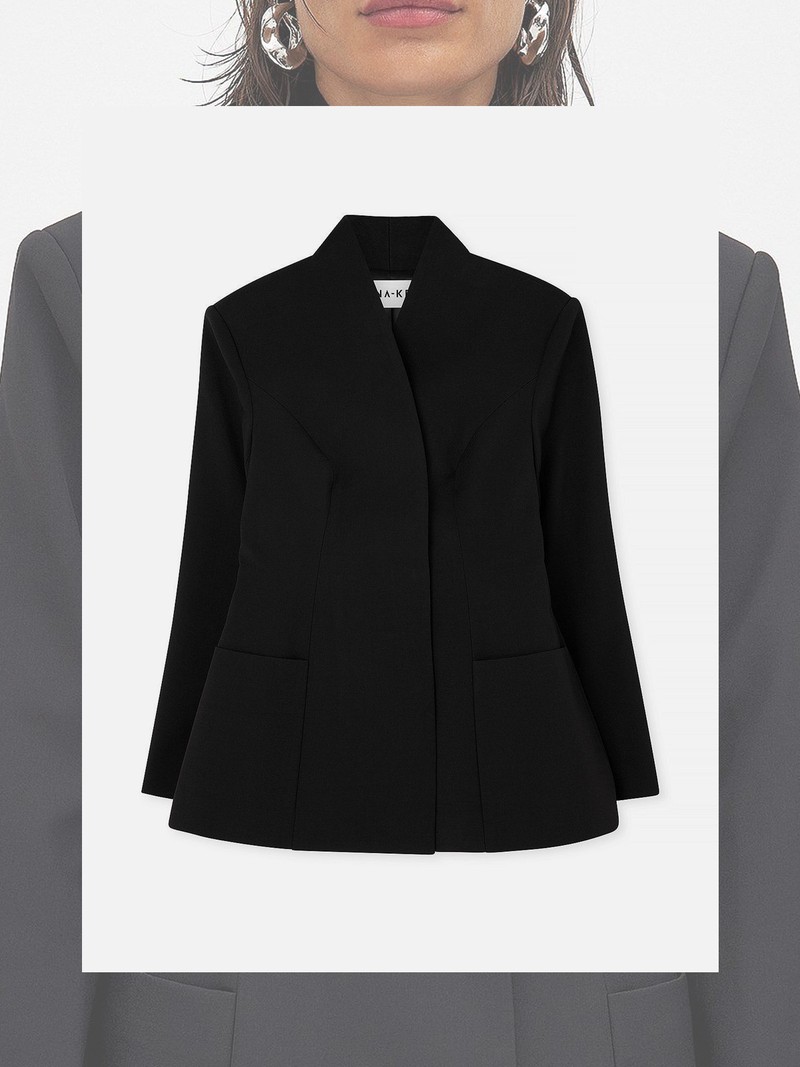 Collarless tailoring is trending for AW25. Clean and architectural, NA-KD’s sculpted blazer is one way to bring the runway look into real life.