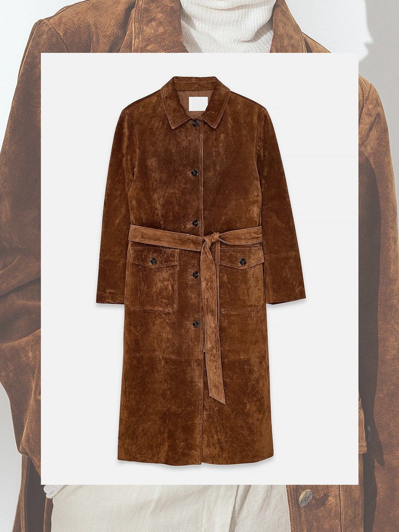 Suede outerwear is back in a big way and this belted coat is the ultimate vintage-inspired layer for autumn.