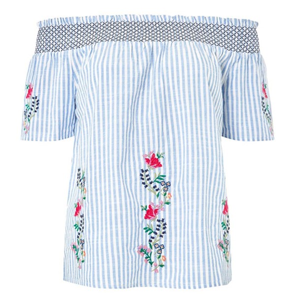 Cold shoulder tops are a summer essential, and Dorothy Perkins is delivering on affordable Bardot styles this season. Whether you’re after lace-adorned offerings or blue searsucker styles, pink ruffle designs or billowing white broderie sleeves, all the trends are covered – team SL has been easily seduced by flower-embroidered pieces.
