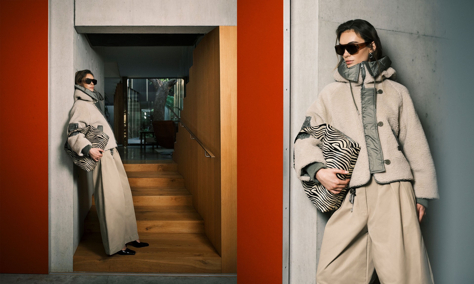 Funnel-neck jackets have been TRENDING AND WE LOVE HOW THIS PIECE BLENDS TECHNICAL DESIGN WITH SOFT BORG for maximum functionality.