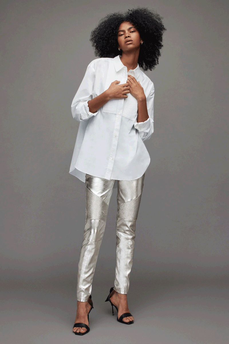 For TIMELESS clothes with a FASHION edge, AllSaints' LEATHER selection is always one of the BEST. We love the METALLIC biker jeans.