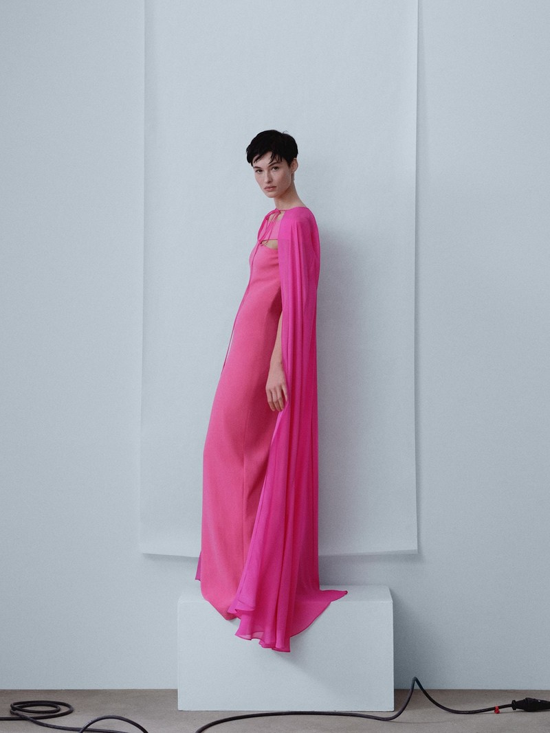 This ultra lightweight cape will add a sophisticated touch to any look. It has plenty of thoughtful details too, like the pretty bow fastening.